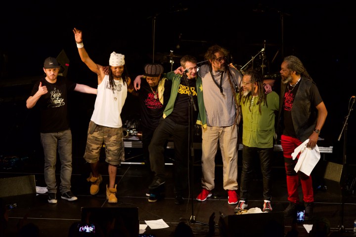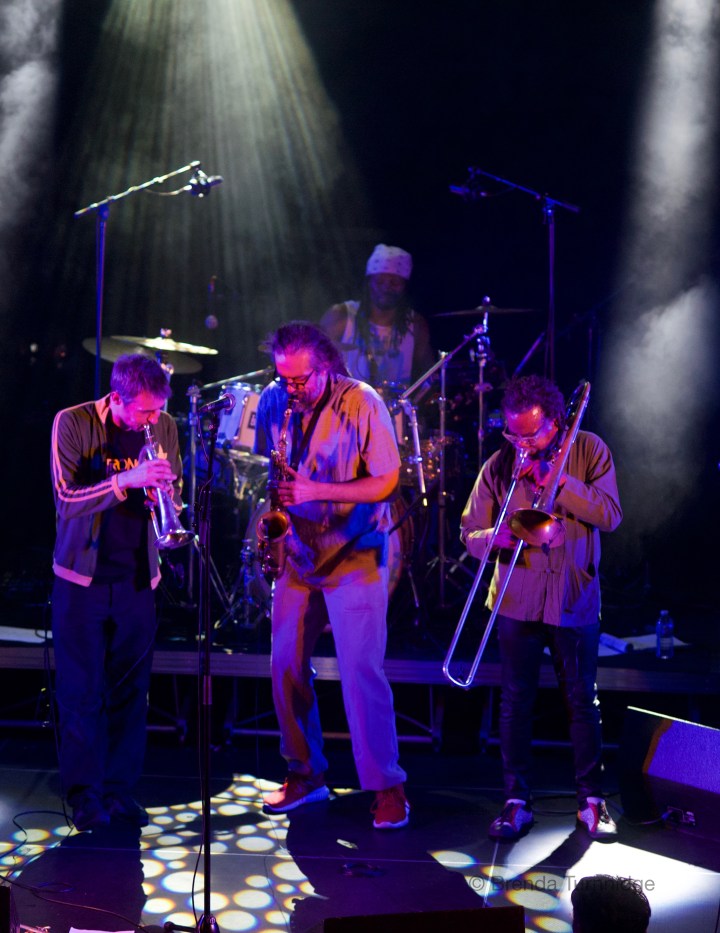 Pierre on stage with Roots Heritage